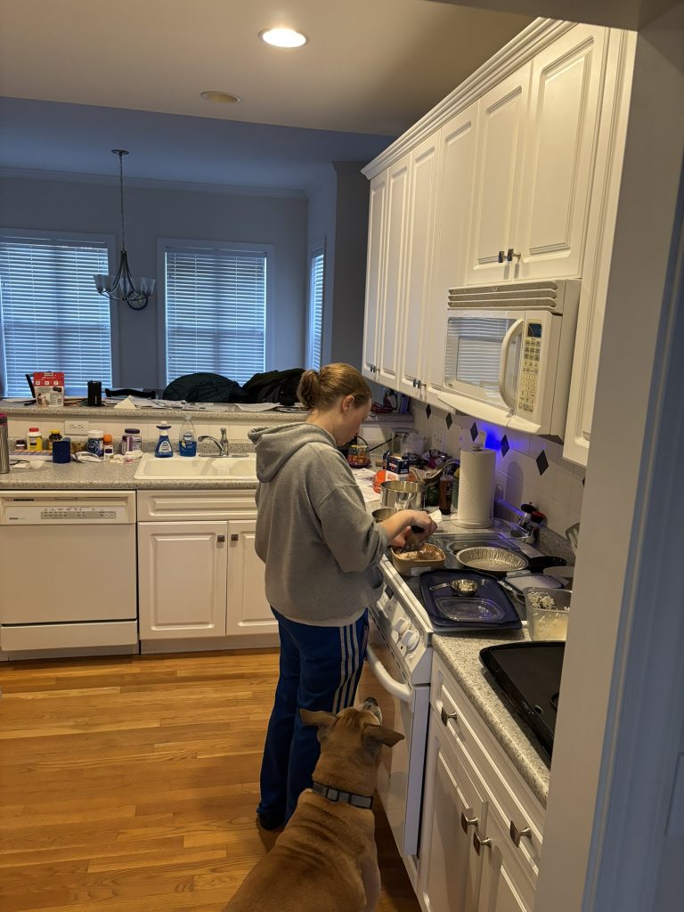 Danny snapped this photo of my sous chef helping out in the kitchen. He was really into this recipe because it consists of 2 of his most favorite foods – chicken and rice.