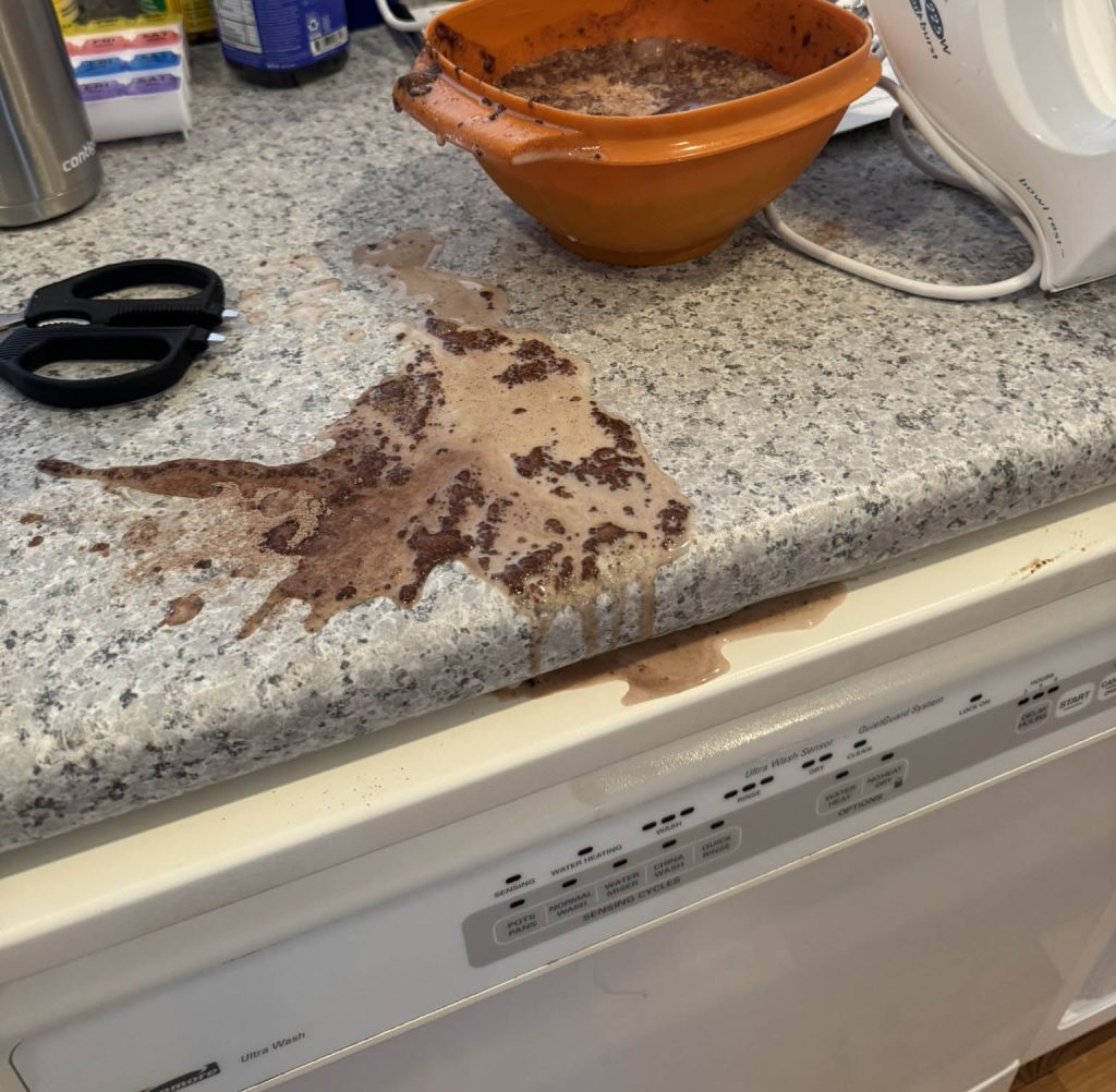 It was when I noticed the pudding mix dripping down my dishwasher that I declared defeat. I texted my friends hosting the Super Bowl party with the below photo and a note that said, “time of death 1pm.” Thankfully, I thought to buy pretzel bites/pimento cheese dip/chips and salsa from a local proprietor on Saturday afternoon (in case the dessert went awry) so I didn’t show up to the party empty handed.