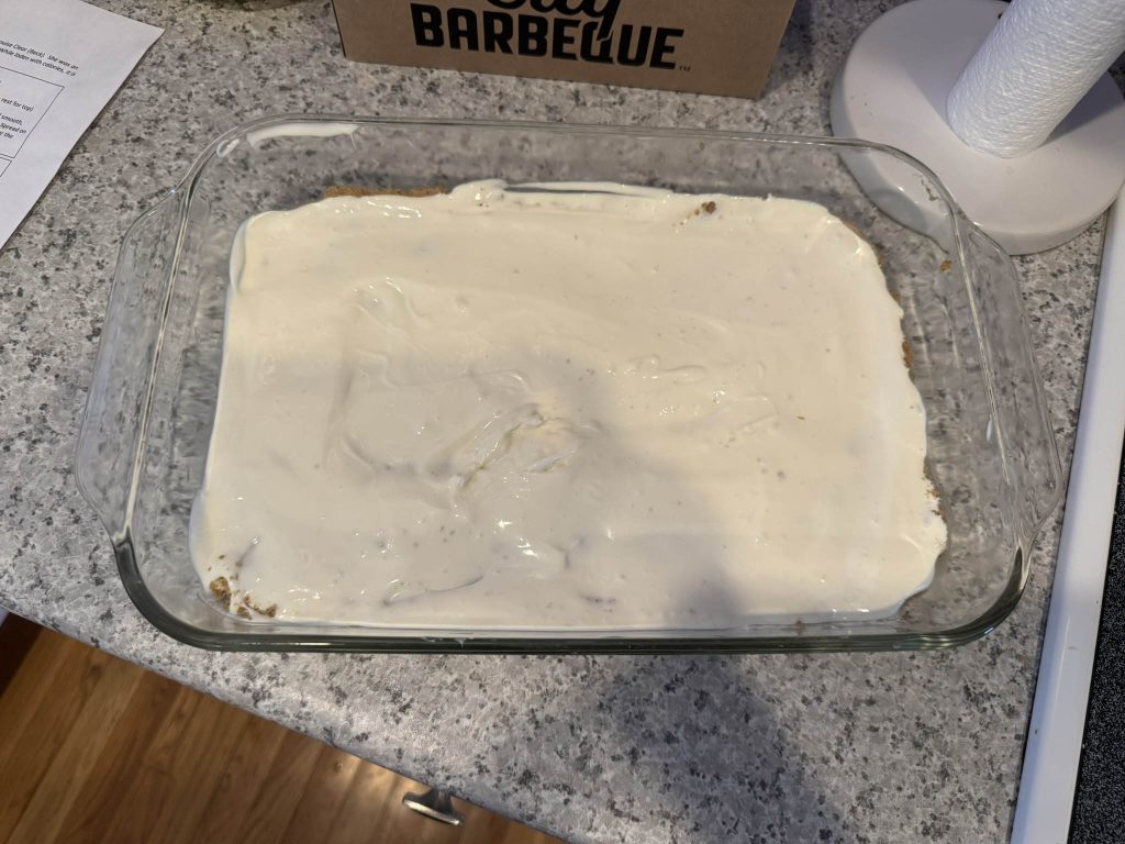 It all went wrong on Layer #3, which is literally just mixing instant pudding with milk and whipping it together. I am still not entirely sure where it went sideways. The recipe I was working from said: