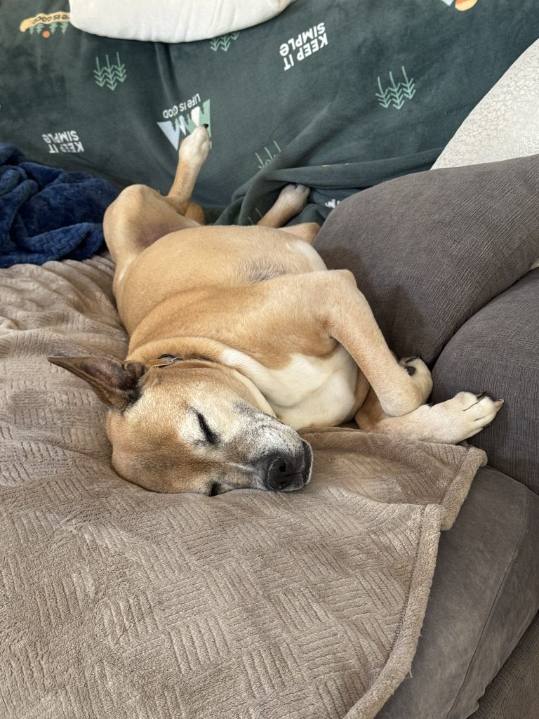 (Recent photo of the good boy without a care in the world. Likely dreaming about how to use my elevated emotional state to manipulate me.)