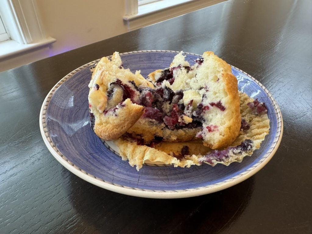 I settled on these “Best Ever Blueberry Muffins” mostly because I had all the ingredients in stock at my house. It is fitting that I decided to make muffins though because I have been trying to clean my diet up the past few weeks. When my mom was alive and I worked from her house, it never failed that when I was on a diet I would smell something delicious wafting from downstairs in her kitchen. 9/10 times it was usually a muffin of some sort. 10/10 times I would say to hell with the diet and grab one fresh out of the oven to enjoy.